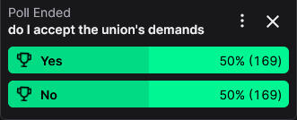 Naturally, as is the way, Josh put this up to a vote...... and, as always, chat delivered.
